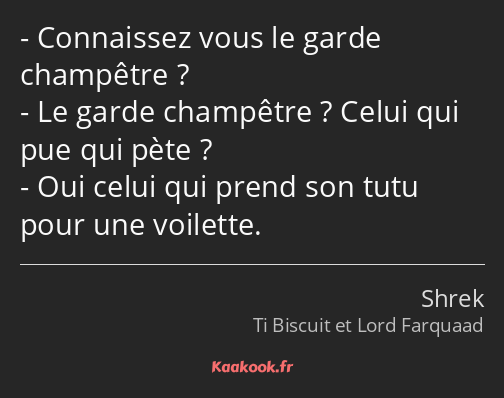 - Une citation de film Shrek. Et puis cétait le fils de la ferme dà côté qui nous lavait apprise. - Connaissez vous le garde champêtre.