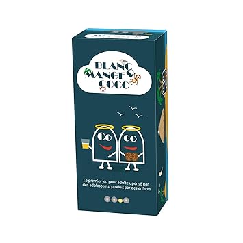 Blanc-manger Coco est un jeu de cartes français créé en 2014. Dans série Tours ment et tourment. Un maître du jeu tire une carte à trous cad il manque un mot ou une proposition.
