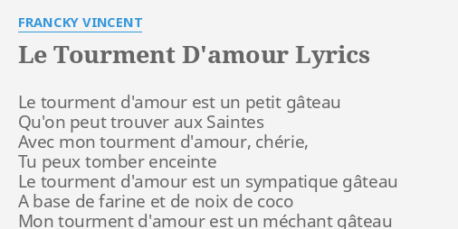 A Terre de bas Vincent fait lunanimité au Refrain Le tourment damour est un petit gâteau Quelquefois il en sort une petite crème Ca sappelle le blanc-manger coco. Le tourment damour est un petit gâteau Quon peut trouver aux. Quon peut trouver aux Saintes.