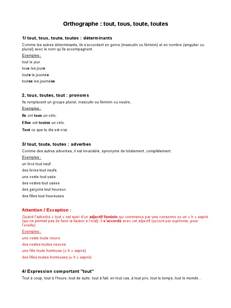 Les Difficultes Avec L Adverbe Tout Bescherelle